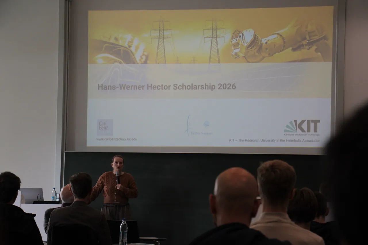 Welche weiteren Möglichkeiten der Hector-Förderung sich nach Abschluss des Hector Seminars ergeben, zeigte Dr. Elgin Eckert vom International Departments des KIT auf. So können sich Absolventinnen und Absolventen auf das Hans-Werner-Hector Stipendium bewerben, welches ein Studium an der Carl-Benz-School of Engineering ermöglicht.