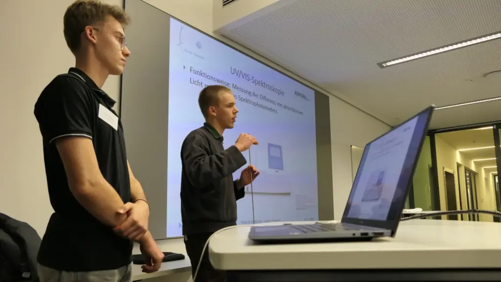 Beim Abschlusskolloquium des Kurses PF19 haben die Schülerinnen und Schüler eindrucksvoll präsentiert, was sie in sechs Jahren Hector Seminar erreicht haben. In den Räumen der Fakultät für Technik der Hochschule Pforzheim stellten sie die Ergebnisse ihrer einjährigen Kooperationsphase vor und gaben dem Publikum einen vielseitigen Einblick in Projekte aus Medizin, Ingenieur- und Materialwissenschaften, Informatik sowie Lebensmitteltechnologie. Die beteiligten Kooperationspartner zeigten sich durchweg begeistert vom Engagement und fachlichen Niveau der Arbeiten. Wertschätzende Rückmeldungen und interessierte Nachfragen unterstrichen den gelungenen Abschluss dieses Jahrgangs.