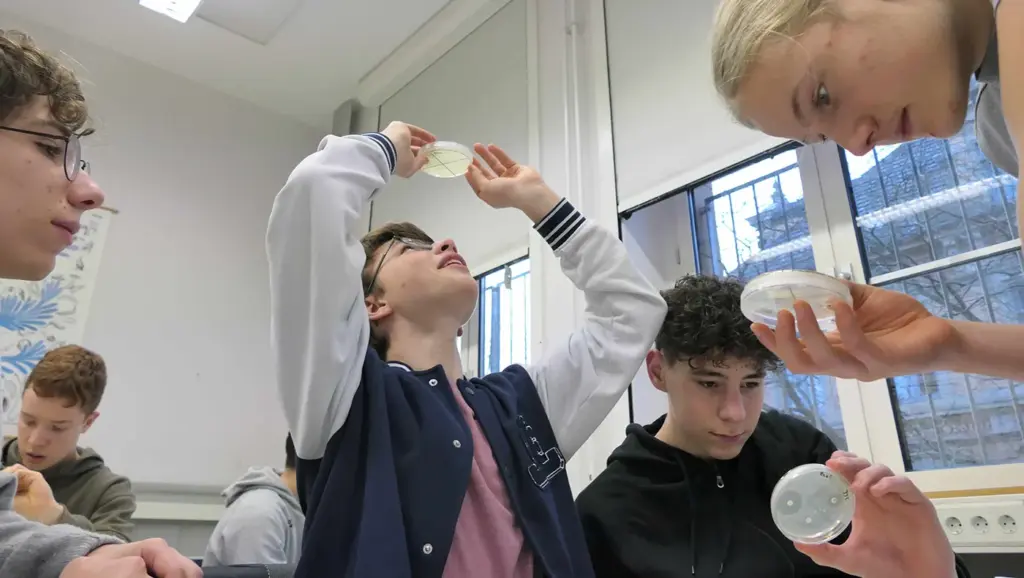 Fragestellungen entwickeln, Experimente planen und durchführen und Hypothesen formulieren! Forschendes, ergebnisoffenes Arbeiten fordert und fördert Kreativität und vermittelt, warum sauberes Arbeiten und Protokollieren für Wissenschaftlerinnen und Wissenschaftler unabdingbar sind. Wenn dann die Ergebnisse ausgewertet werden können, ist die Spannung groß, wie hier im Kurs KA21. In ihren Experimenten haben die Hectorianerinnen und Hectorianer untersucht, wie verschiedene Antibiotika auf unterschiedliche Bakterien bzw. Hefe wirken. Die Ergebnisse liefern teils Antworten; sind häufig aber Anlass für neue Fragestellungen. Forschung eben!