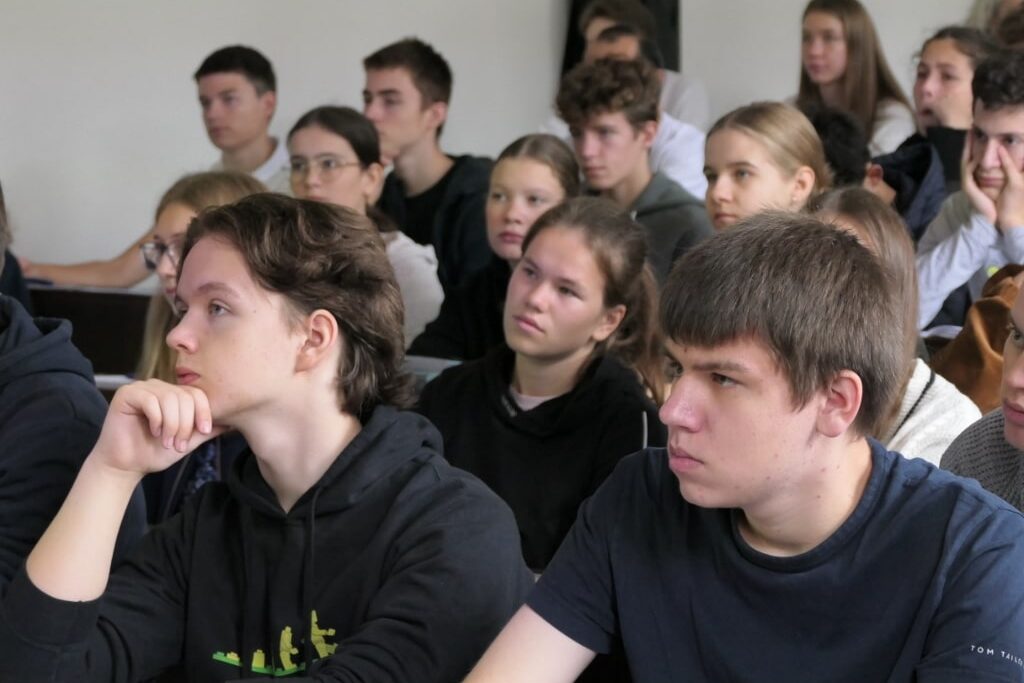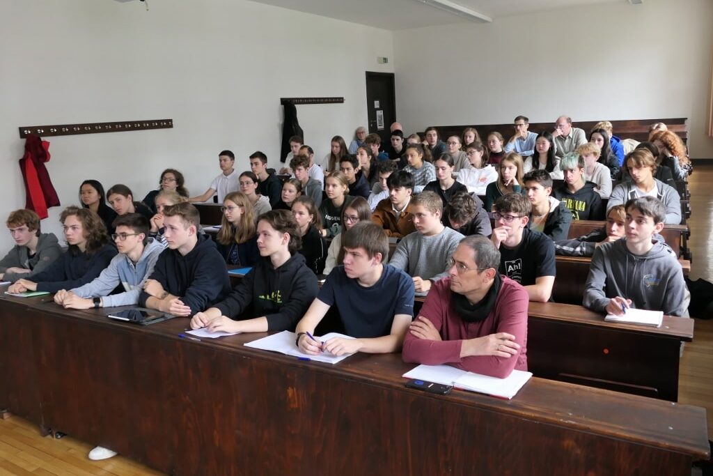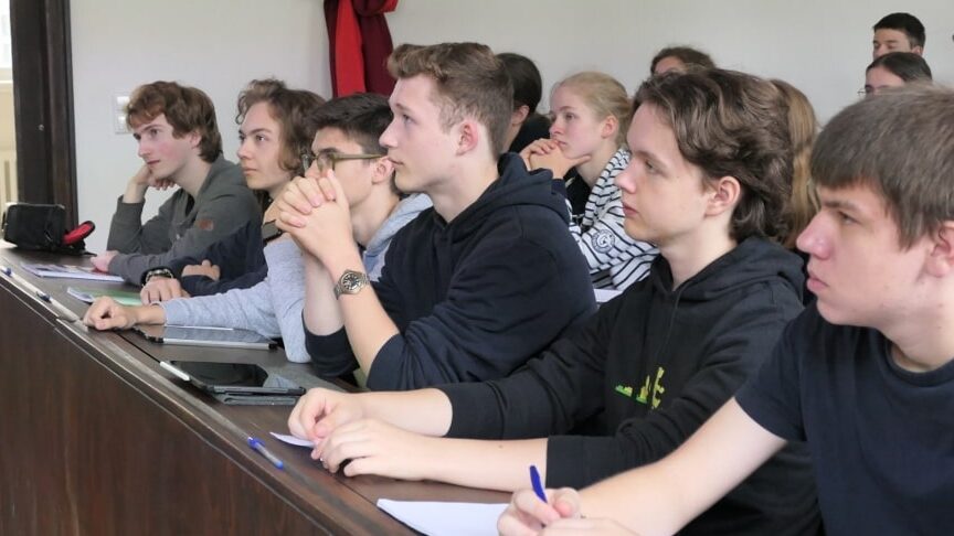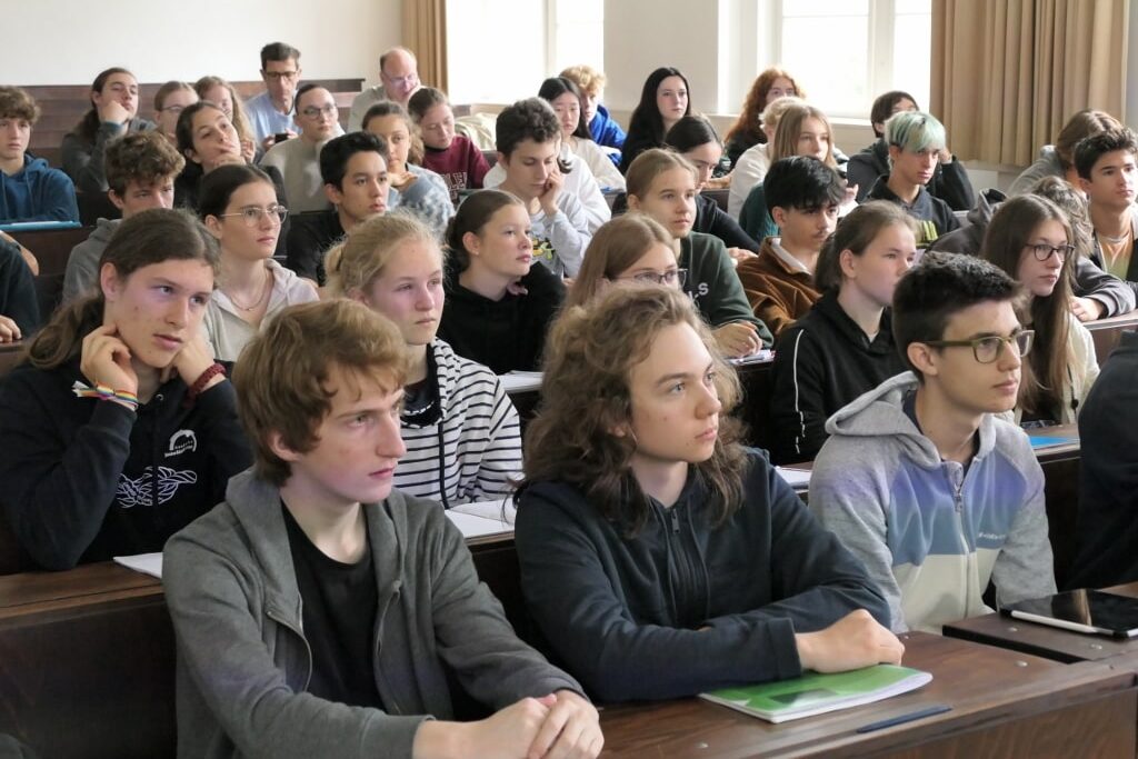 Die Hectorianerinnen und Hectorinaer nutzten reichlich die Gelegenheit mit dem Laureaten ins Gespräch zu kommen und brachten den Wissenschaftler mit ihren Fragen ein ums andere Mal zum Nachdenken. „Warum Mathematik?“, „Was sind die aktuellen Forschungsthemen in der Mathematik?“, „Woher bekommen Sie die Ideen für ihre Projekte?“, „Wie lange brauchen Sie um eine Lösung zu finden?“ und nicht zuletzt: „Können Sie vereinfacht erklären, worum es in ihrer Arbeit ging, für die Sie mit der Fields-Medaille ausgezeichnet wurden?“ Während es bisweilen schwierig war, die fachlich abstrakten und mathematisch sehr anspruchsvollen Inhalte seiner Forschung herunterzubrechen, gewährte Andrei Okounkov viele persönliche Einblicke und teilte mit den Hectorianerinnen und Hectorianern seine Erfahrungen.