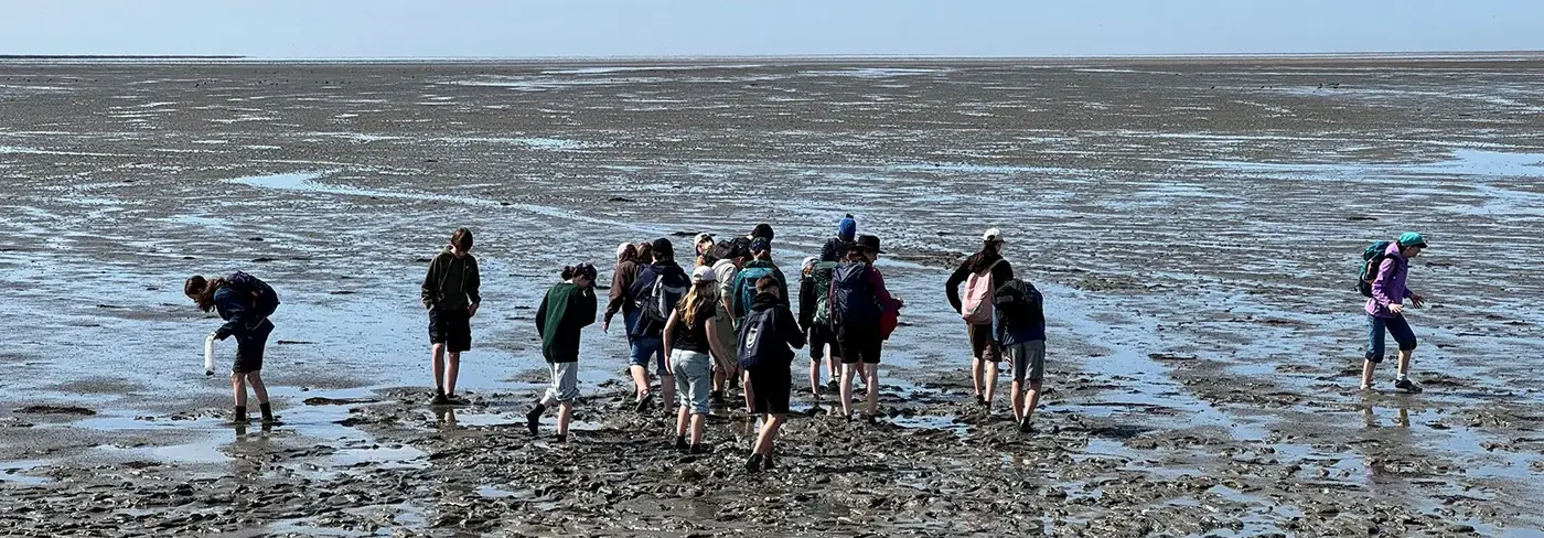 Tag 4 (19.05.2025): Unterwegs im Watt! Vormittags sammeln wir auf der Wattwanderung typische Bewohner des Wattenmeeres, nachmittgs untersuchen wir diese im Labor. Eingepackt wird, was in die Untersuchungsgefäße passt. Aber keine Sorge: Im Nationalpark Wattenmeer gelten strenge Regeln – auch für Forscherinnen und Forscher.