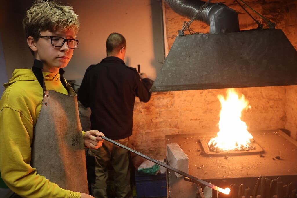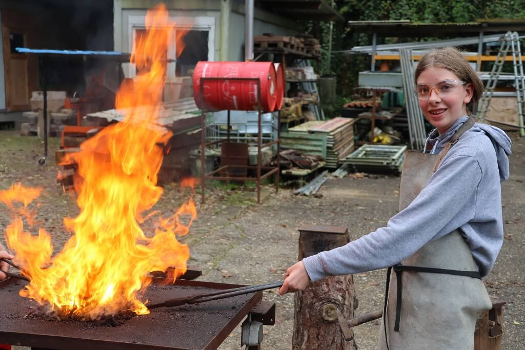 Beim Besuch der Offenen Jugendwerkstatt Karlsruhe e. V. in Grünwettersbach haben die Hectorianerinnen und Hectorinaer verschiedene handwerkliche Techniken ausprobiert und kennengelernt, die beim Bau der Prototypen hilfreich sein können. Unter sachkundiger Anleitung und Betreung durch Hans Riehm und dem Team der OJW wurden zum Beispiel aus Metall Eulen und Kinderschaukeln geschweißt, Seepferdchen, Echsen und Schnecken geschmiedet, Rückenkratzer, Schachfiguren, Kerzenständer und Eierbecher gedrechselt oder hölzerne Küchenbretter in Form von Tieren gefertigt. „Unser Ziel ist es, die Schülerinnen und Schüler an das handwerkliche Arbeiten heranzuführen.“, betont Hans Riehm, der früher als Schulleiter in Pfinztal tätig war. Wie dies gelingen kann, wurde an diesem Nachmittag eindrücklich deutlich.
